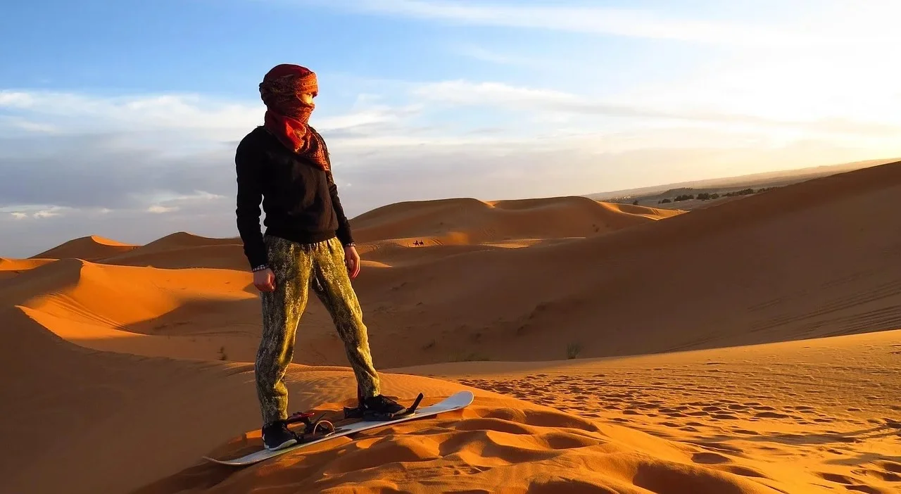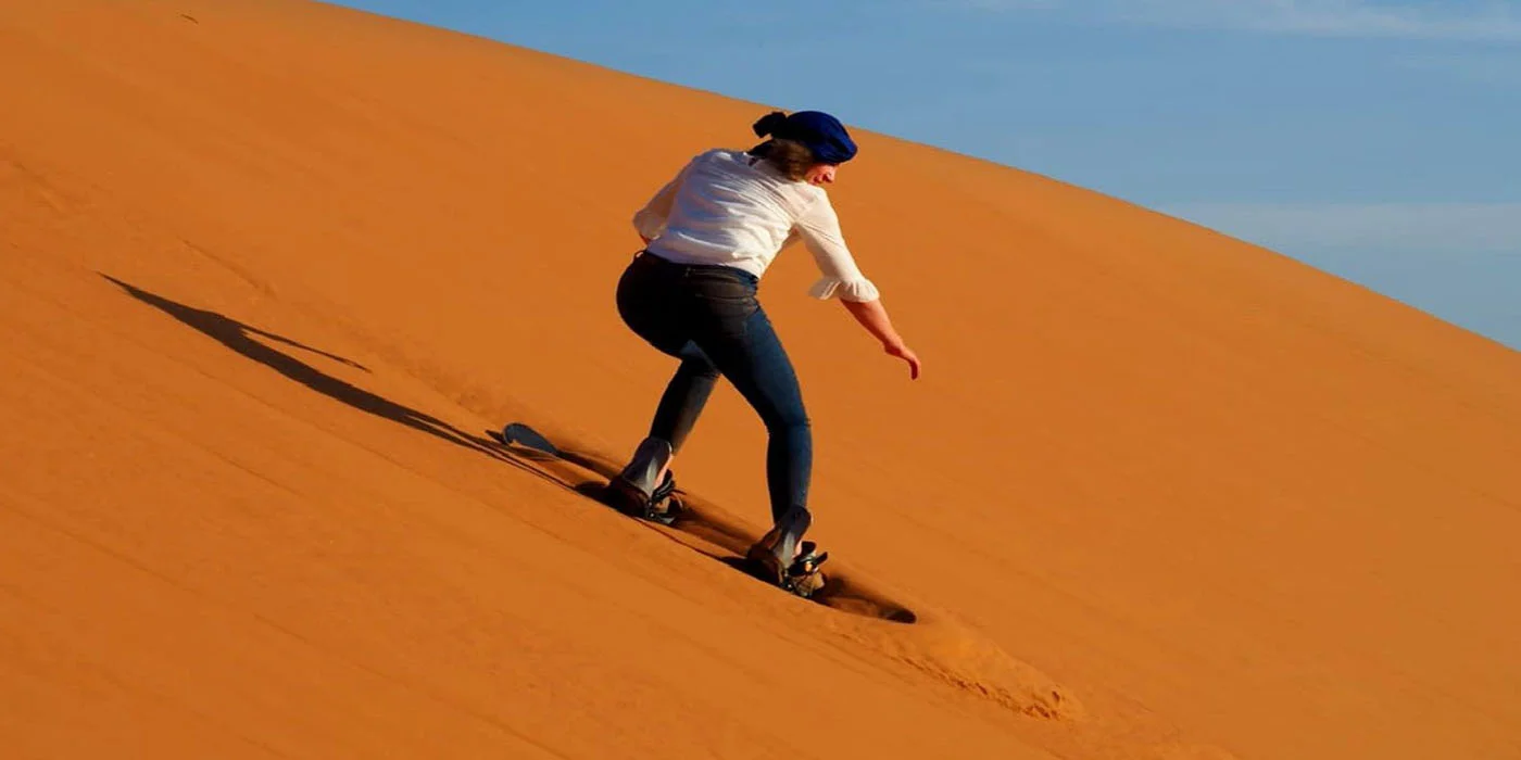 Vivez une expérience inoubliable de sandboarding dans les dunes d’Agadir, accompagnée d’un délicieux déjeuner préparé avec amour par les habitants du village de Banana. Profitez d’une demi-journée de sandboarding à Agadir (à une heure de route au nord d’Agadir) dans le désert marocain. Après une heure de route au bord de l’océan Atlantique, en passant par de nombreux villages, dont les villages de surfeurs (Taghazout et Tamrakht) et le village de bananes (Tamri), nous arriverons à Timlalin (dunes de sable), où votre expérience de sandboarding se déroulera sur une plage sauvage (Taboga Beach). Le retour à l’hôtel est prévu vers 20h. Programme de randonnée : – Matin : 9h00 / 2h00. – Après-midi : 2h00 / 19h00. – 1 journée de sandboarding + Vallée du Paradis avec déjeuner. Vivez une expérience inoubliable en sandboarding dans les dunes d’Agadir, accompagnée d’un délicieux déjeuner préparé avec amour par les habitants du village de Banana. Profitez d’une demi-journée de sandboarding (sand surfing) à Agadir (à une heure de route au nord d’Agadir) dans le style du désert marocain. Après une heure de route au bord de l’océan Atlantique, en passant par de nombreux villages, dont les villages de surfeurs (Taghazout et Tamrakht) et le village de bananiers (Tamri)… Nous arrivons à Timlalin (dunes de sable), où votre expérience de sand surfing se déroule sur une plage sauvage (Taboga Beach). Le retour à l’hôtel est prévu vers 20 heures. Points forts : – Sand surfing dans le style du désert – Déjeuner chez l’habitant – Vue panoramique sur la plage sauvage – Expérience au coucher du soleil sur la plage sauvage – Pause thé à la menthe marocain.